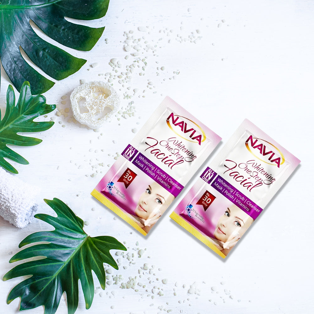 NAVIA Women One Step Facial Sachet delivers professional-grade skincare in a convenient single-use format. This 22gm sachet combines multiple benefits into one streamlined treatment, eliminating the need for multiple products in your routine. Formulated with active ingredients to cleanse, exfoliate, and nourish in a single application, it's ideal for busy professionals seeking effective results without complexity. Perfect for travel or daily use, each sachet provides a measured dose of concentrated facial care. Experience visible improvements in skin texture and clarity with this innovative all-in-one solution designed for modern women.